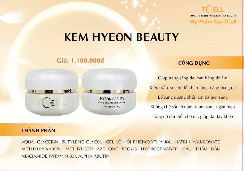 Kem dưỡng trắng hồng da - HYEON BEAUTY WHITE BRIGHTENING CREAM - Net 30gr